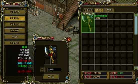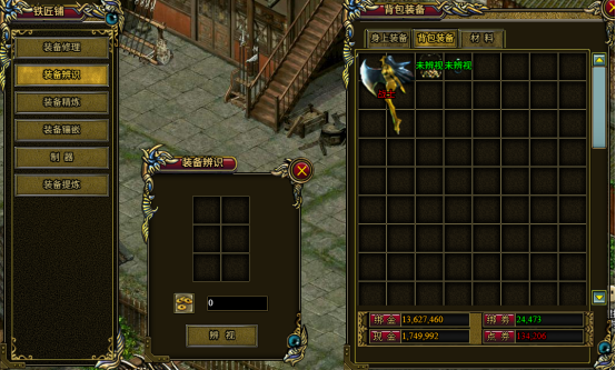 相信每个熟悉暗黑的玩家对暗黑中的装备鉴定系统都不会陌生,而《魔神之战》同样继承暗黑的装备鉴定系统,具有额外属性或凹槽的装备掉落时,都用不同于普通装备的绿色加以区分,但绿色装备在没有鉴定时,具体的额外属性并不可见,需要花费一定数量的华夏币在城市铁匠处进行辨视。