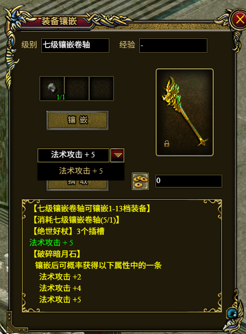 注意:需要镶嵌的装备必须要有凹槽才可以镶嵌