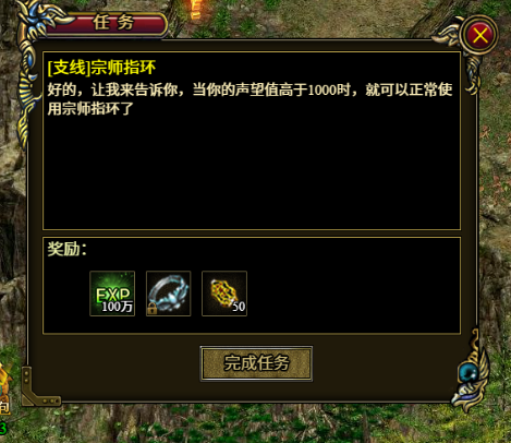 宗师指环的获得与声望是息息相关的,当声望达到了500点以上 ,与昆仑的NPC——王师(昆仑)对话,则可开始获得宗师指环的历程。