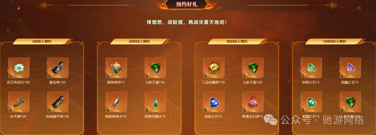 游戏开服后,预约网址的活动和礼包很快就会结束,请华夏勇士们及时预约,领取先遣礼包