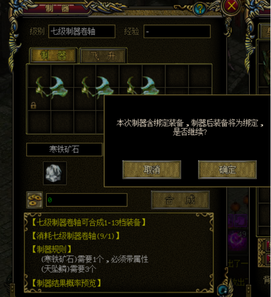 绑定装备:使用绑定装备如果和未绑定的装备进行合成会变为绑定装备。